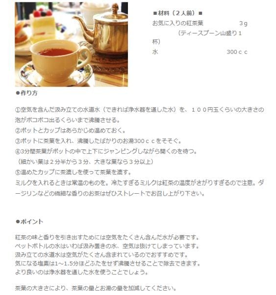 アルションの香りの紅茶は、フランスプロヴァンス地方のグラースでとれる天然香料を中心にフレーバーをつけているので、香りは繊細で優しくお茶の味がしっかり出ていることが自慢です。