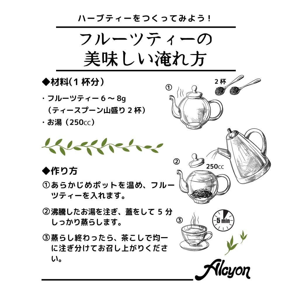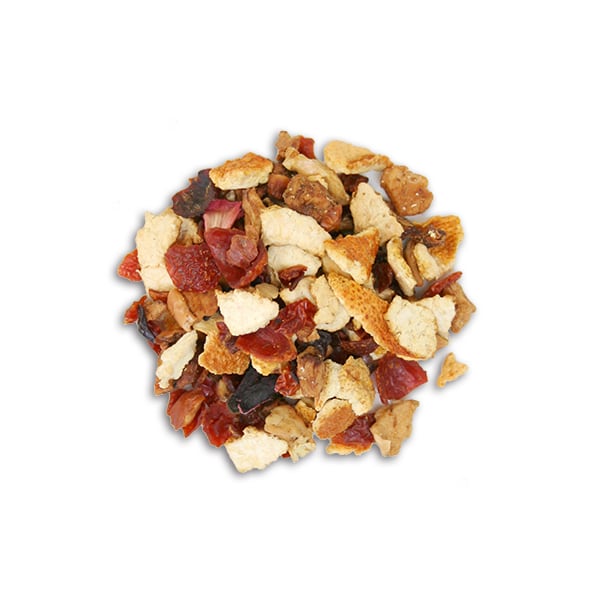 リンゴ、オレンジなどのフルーツにビタミン豊富なハイビスカス、野ばらをブレンドしたノンカフェインティーです。