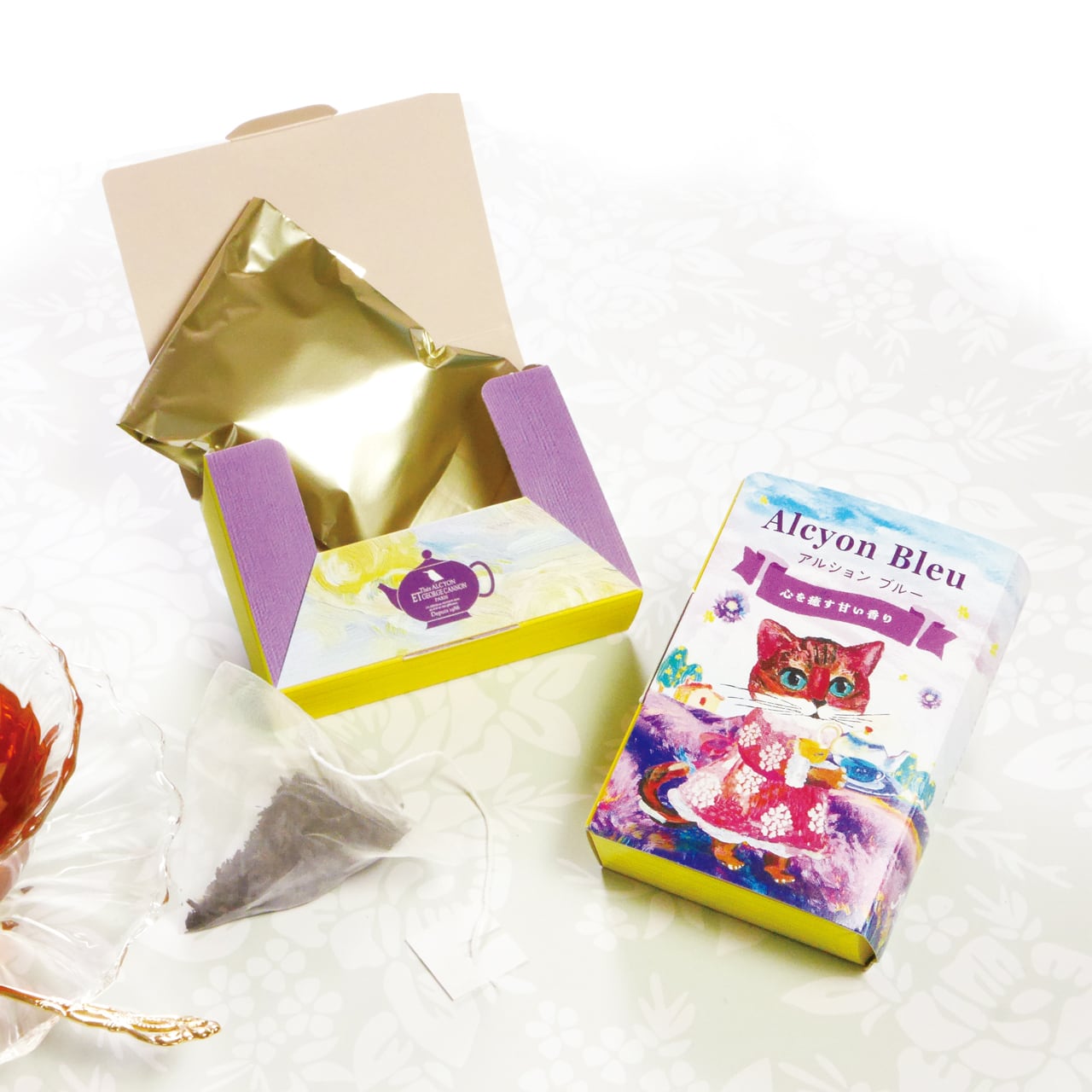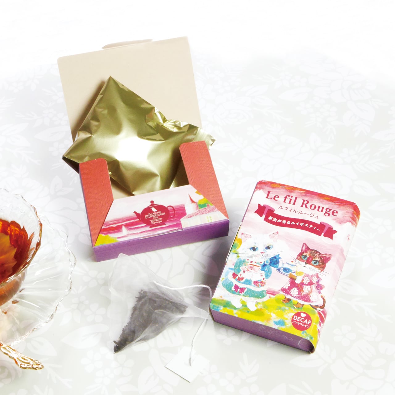 猫がくれた紅茶時間、人気No.1紅茶のアルションブルーとノンカフェインのルイボスティーのルフィルルージュ。